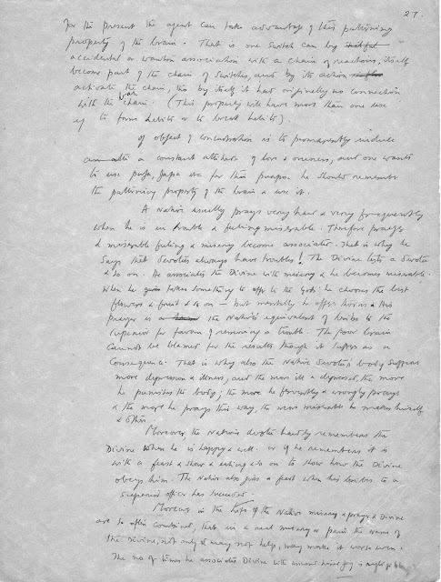Moreover in the life of the Native misery and prayer and Divine are so often combined, that in a real misery or pain the Name of the Divine, not only may not help, may make it worse even. The number of times he associates Divine with unconditioned joy is negligible.